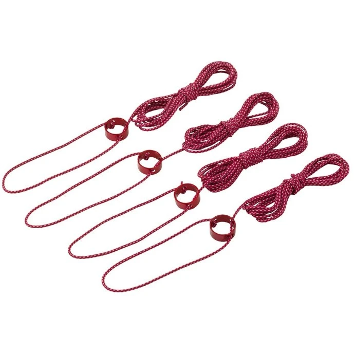 The lightweight and adjustable feature a secure, non-slip design that makes it easy to stabilize your tent in heavy winds and to minimize leakage by keeping the rainfly away from the tent body. They come with easy-to-adjust CamRingâ„¢ Cord Tensioners and are available in small and large sizes: a set of four 2.4 m guy lines and a set of two 3 m guy lines.